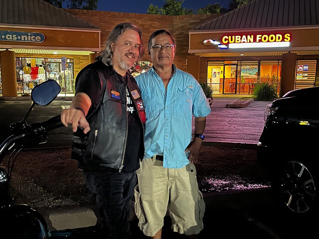 It was a fairly warm ride over to Peoria & 43rd Ave where Cuban Foods is located. I left a little early to visit Sam Ash music store less than a mile away. When I arrived at the restaurant, Rodney, Jo and Brian were already there with our table set up.
