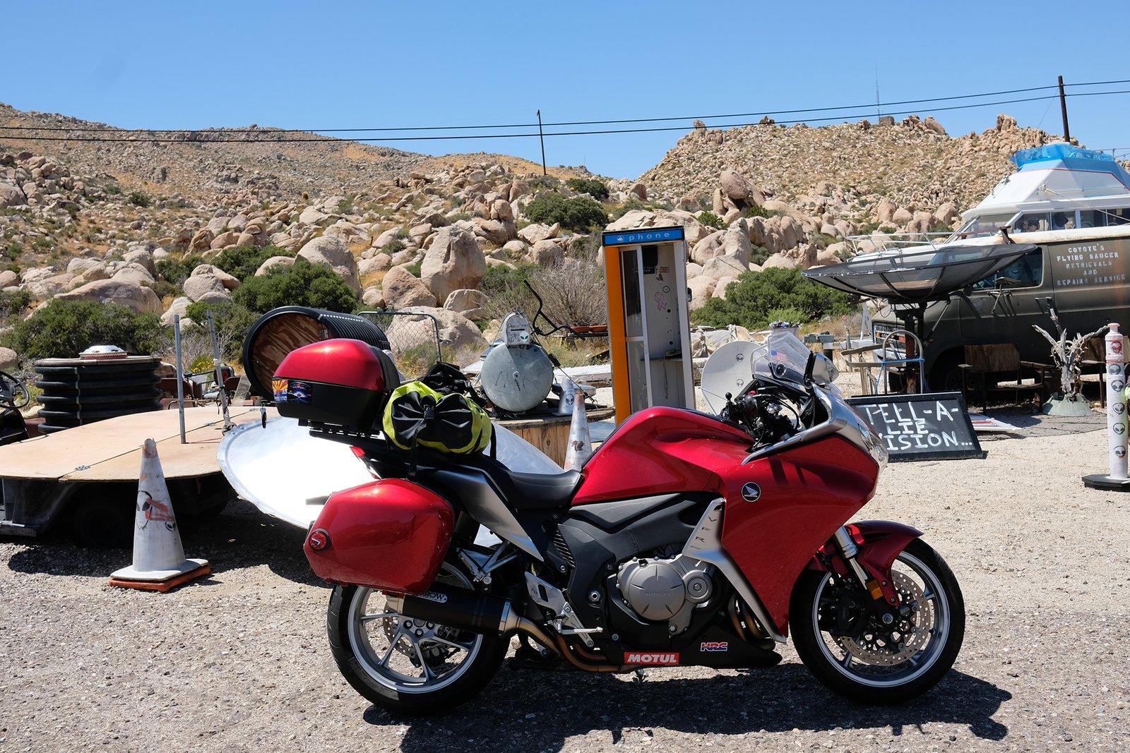 Planning for the Alien Encounters tour starts about a year ago when California AZRATPacker, Darlene Fong sent me a couple of interesting links she found while looking up alien themed places to visit.  The first was Coyote’s Flying Saucer Repair in Ocotillo, CA and the second was the Integretron in Landers.  Loving the two suggestions for stopping points on a future ride, I started to formulate a route to tie the two together.  I then added a trip through Death Valley and El Chino Loco suggested the Atomic Inn in Beatty, NV as a stop for the night.  Behold, the Alien Encounters Grand Tour was born!